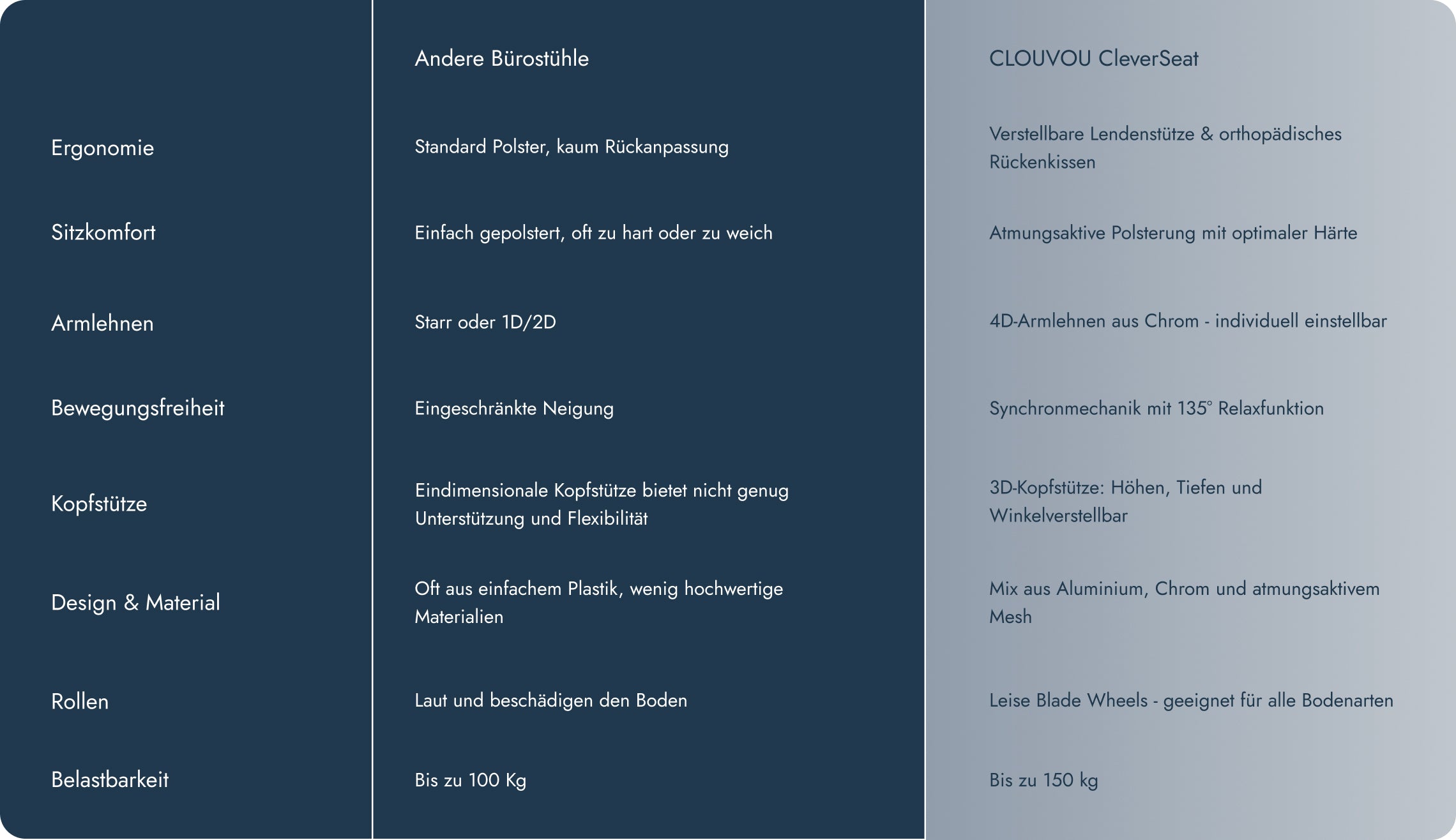 "Der CleverSeat überzeugt durch seine vielfältigen Einstellungsmöglichkeiten, den hohen Sitzkomfort und das sehr gute Preis-Leistungsverhältnis."